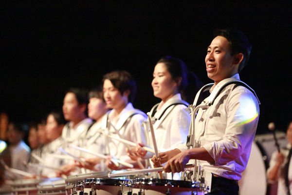 지난 11일 송도세계전통민속제 행사장에 마련된 특설무대에서 SMD마칭밴드팀이 현란한 연주를 선보이고 있다.