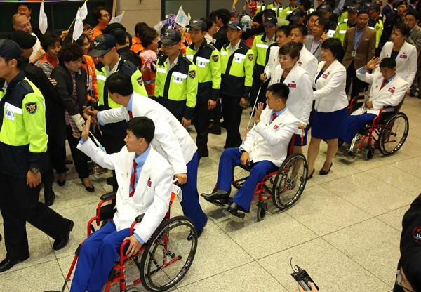 2014 인천 장애인아시안게임에 참가할 북한의 장애인선수 9명을 포함한 29명의 선수단은 지난 11일 고려항공편으로 평양을 출발, 베이징을 거쳐 아시아나항공 OZ334편으로 이날 오후 6시12분 인천국제공항에 착륙했다.