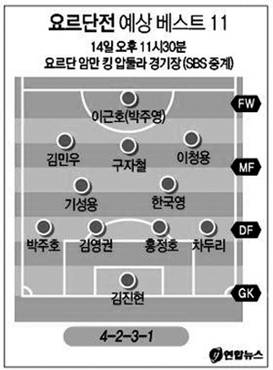 최전방에는 이근호가 유력하다. 박주영은 일단 요르단전에는 교체 투입될 것으로 보인다.