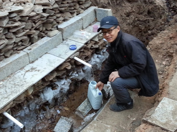 “특히 지난해부터 수질이 떨어지는것 같아 너무 속상했습니다. 물탕크를 허물어버릴가는 생각도 했으나 등산객들이 말려 올 10월부터 다시 물 탕크 세개를 파고 샘물을 받는 곳도 4~5메터 아래 되는 곳으로 옮겼습니다”고 소개했다.