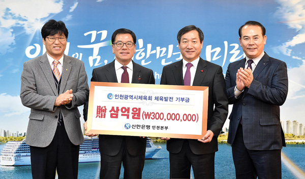 신한은행, 市에 체육기부금 전달