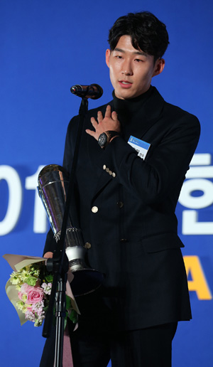 손흥민은 “작년에는 상 받고도 자리에 참석하지 못해 아쉬웠는데 이번에는 참석하게 돼 영광”이라며 “국내, 해외에 이 상을 받을 만한 선수들이 많은데 제게 주셔서 정말 감사드린다”고 말했다.