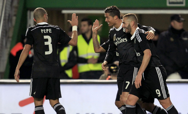 레알 마드리드는 후반 11분 왼쪽 측면을 돌파한 호날두의 크로스가 엘체 수비수와 골키퍼를 잇달아 맞고 흐르자 쇄도하던 벤제마가 텅 빈 골대로 볼을 밀어 넣어 결승골을 맛봤다.