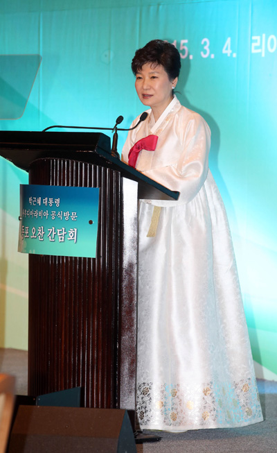 박 대통령은 축사를 통해 ▲한국형 중소형 원자로인 스마트(SMART), 태양광 등 신(新) 에너지원 협력 확대 ▲사우디의 보건의료, 교육 등 서비스 수요 급증에 대응한 상호협력 증진 ▲사우디 국부펀드인 퍼블릭인베스트먼트펀드(PIF), 킹덤홀딩스사(KHC)와의 협력을 통한 양국간 공동투자 사업 발굴과 중동, 아프리카 등 신시장 공동진출 등을 제안했다.