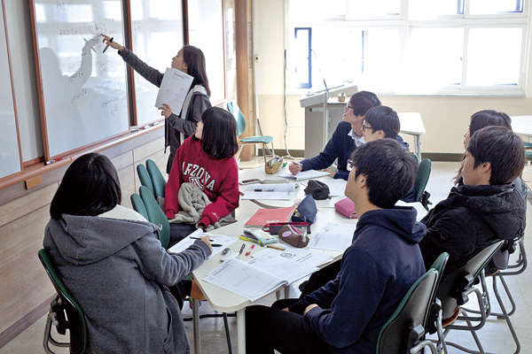스터디그룹을 떠올리면 ‘결핍이 열정을 낳는다’고 말할 정도다. 지난해에는 무려 155개에 달하는 학교 등록 스터디그룹이 활동했다. 학교 교실 공간만으로는 부족해 도서관, 과학실 심지어 교장·교감실까지 활용하고 있다. 한 선생님은 “스터디 장소가 부족해 때로는 구령대에 모여 활동을 하고 있는 학생들을 보면 안쓰러운 마음이 들기도 하지만 대견한 모습에 절로 미소 지어진다”고 전했다.