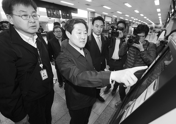 유기준 장관, 무인발권기 이용하다