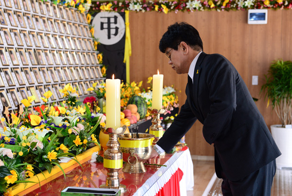 이청연 시교육감, 진도 팽목항 분향소 헌화