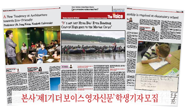 본사가 기존의 ‘더 보이스’ 학생기자와는 별도로 영문으로 신문기사와 에세이를 작성할 ‘제1기 더 보이스 영자신문 학생기자’를 모집한다. 영자신문 학생기자로 선발되면 영자신문 읽기, 영문기사 및 에세이 작성 방법 등의 교육을 받게 되며 작성된 기사는 전문 강사의 첨삭 지도과정을 거쳐 본지 ‘The VOICE’ 영자지면과 본사 홈페이지에 영문으로 게재된다.