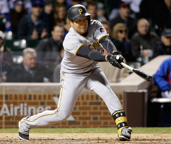 피츠버그는 강정호의 동점 타점에 이어 5회초 2사 만루에서 마르테의 밀어내기 볼넷으로 역전했다.