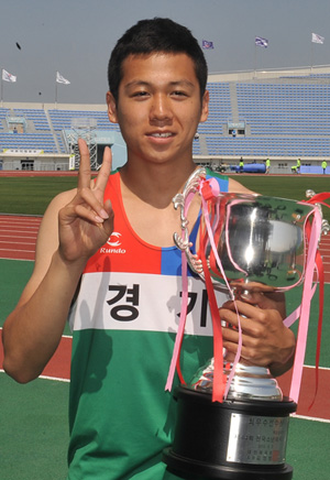 31일 제주종합경기장에서 열린 제44회 전국소년체육대회 육상에서 남자중등부에서 3관왕에 오르며 최우수선수에 선정된 반인호(파주 봉일천중)의 소감.