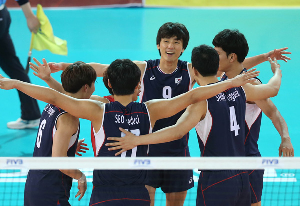 한국 남자 배구 대표팀이 2015 월드리그 국제남자배구대회에서 4경기 만에 첫승을 신고했다.