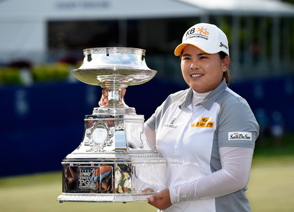 대회 최소타 타이인 합계 19언더파 273타를 적어낸 박인비는 동반플레이를 한 김세영(22·미래에셋)을 5타차로 따돌리고 2013년과 2014년에 이어 이 대회에서 다시 정상에 올랐다.