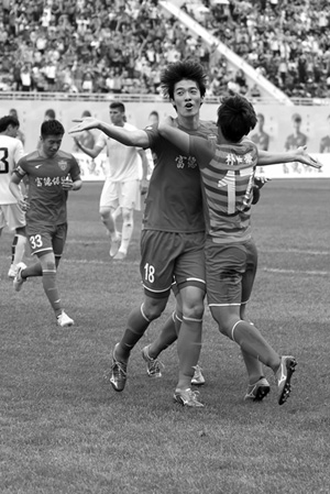 13일 오후 3시, 연길시인민경기장에서 펼쳐진 갑급리그 제13라운드 무한줘르팀과의 홈장경기에서 연변팀은 하태균선수의 2꼴로 2대0 완승, 리그 3련승을 따내고 갑급리그 1위를 굳혔다.