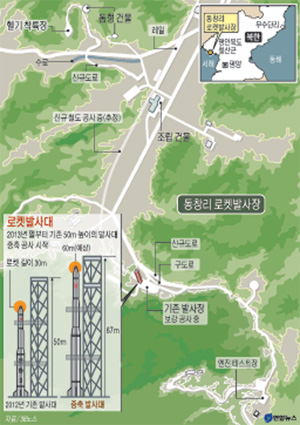 지난 2013년 말부터 기존 50m 높이의 발사대 증축 공사를 시작한 북한은 최근 17m를 더 높여 67m 크기의 발사대 증축 공사를 거의 마무리했다고 정부의 한 소식통이 22일 밝혔다.