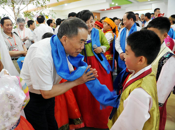 21일, 대표들은 연길시중앙소학교를 찾아 가지각색의 조선족특색의 복장차림을 한 학생들의 열렬한 환영을 받았으며 학생들은 정연하게 렬을 지어 독특한 특색을 띤 례의체조로 손님들에 대한 존경과 환영의 마음을 표달했다.