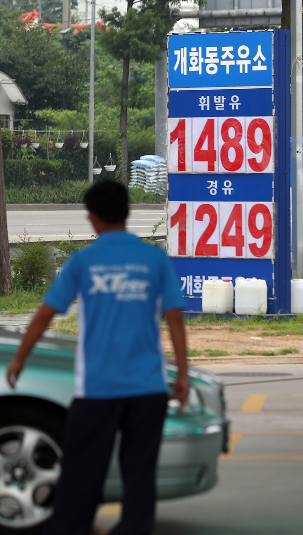 휘발유 값 1400원대 추락
