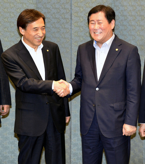 주형환 차관이 “옛날에는 한식집에서 만나곤 했다”고 말하자 이 총재는 “예전에 강만수 전 장관을 한식집에서 봤다”고 기억을 되살렸다.