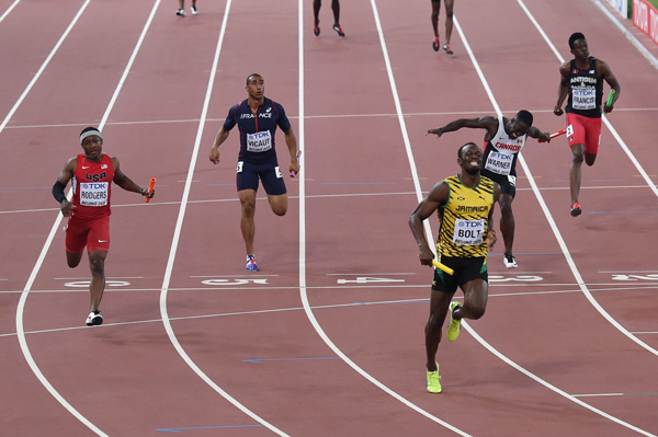 100m 우승으로 세계육상선수권 최다 금메달리스트가 되고, 200m 정상에 올라 사상 최초로 세계육상선수권 금메달 10개를 채운 볼트는 또 하나의 금메달을 추가했다.