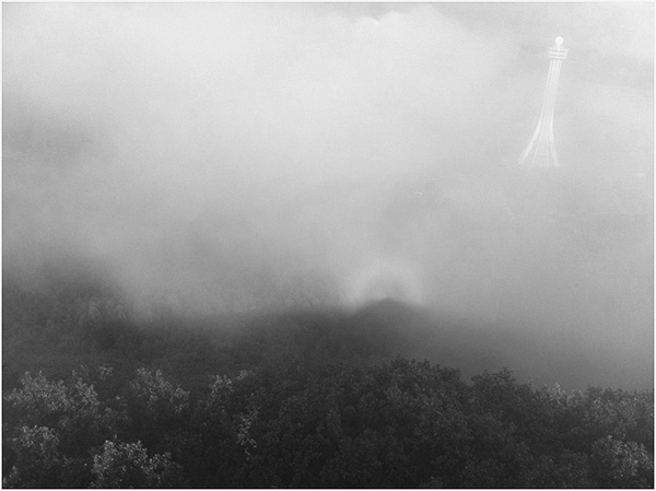 경관대까지 올라가자 사면에 하얀 안개가 자욱히 일어나 마치 선경에 온듯한 분위기였으나 동서남북 방향도 잘 알리지 않았다고 한다. 다행히 기상레이다탑이 멀리서 보이기에 그곳을 마주 향해 바라보았단다.