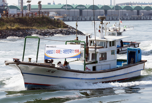 서울 한강으로 가는 수산물 어선