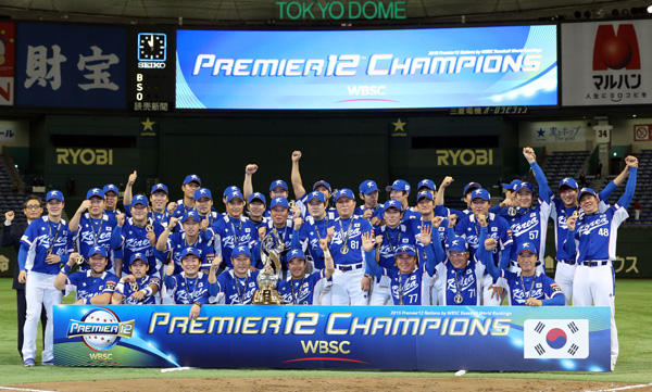 김인식 감독이 이끄는 세계랭킹 8위의 한국 야구대표팀은 21일 일본 도쿄돔에서 열린 2015 세계야구소프트볼연맹(WBSC) 프리미어12 결승전에서 미국(세계랭킹 2위)을 8-0으로 격파했다.