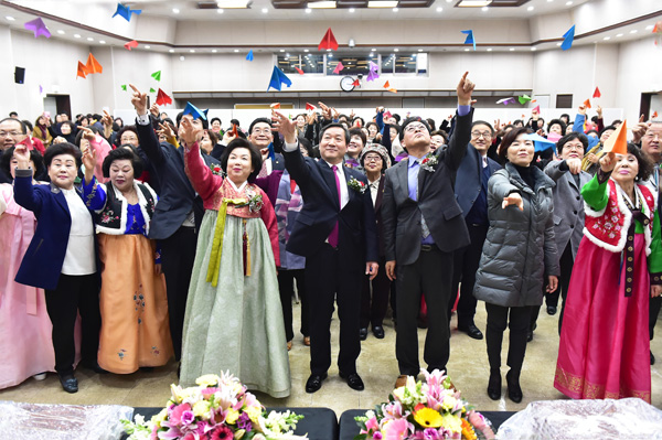 ‘행복 종이 비행기’ 날리는 인천여성 신년인사회