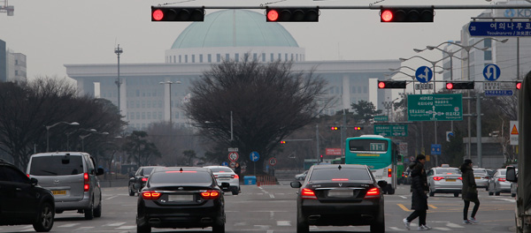 짙은 안개 깔린 국회 앞