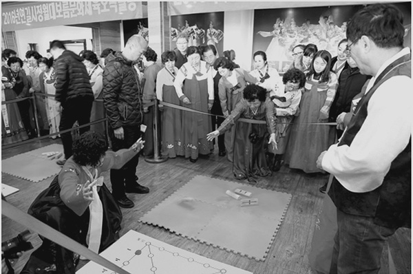 윷놀이와 동시에 진행된 수수께끼 알아맞추기 현장도 자못 열띠였다. 각양각색의 종이에 씌여진 130여개의 수수께끼는 내걸린지 불과 15분만에 모두 주민들의 ‘로획물’이 되였다.