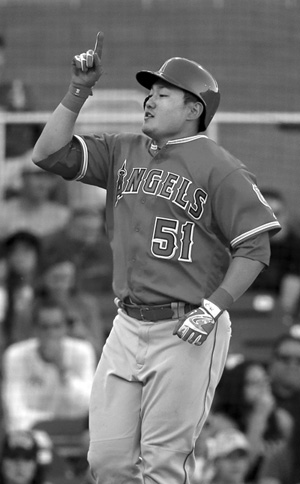로스앤젤레스 에인절스의 최지만(25·사진)은 이날 애리조나주 스콧데일에 있는 솔트리버 앳 토킹스틱에서 열린 애리조나 다이아몬드백스와의 시범경기에 9번 타자 1루수로 선발 출전해 3-3으로 팽팽하게 맞선 6회초 2사 3루에서 역전 투런포를 터트렸다.