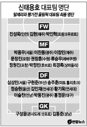 수비수에는 황기욱(연세대)과 함께 대표팀 출전 경험이 없는 김민재(연세대)가 발탁된 가운데 주장을 맡았던 연제민(수원)은 신 감독의 호출을 받지 못했다.