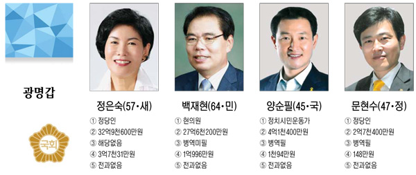 4·13총선 선거구별 출마자 명단-경기도 광명갑