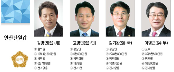 4·13총선 선거구별 출마자 명단-경기도 안산단원갑