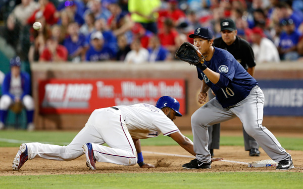 추신수는 3회초 1사 2루에서, 이와쿠마의 시속 142㎞ 싱커를 잘 밀어쳤지만 시애틀 3루수 카일 시거의 다이빙 캐치 호수비에 걸려 아웃됐다.