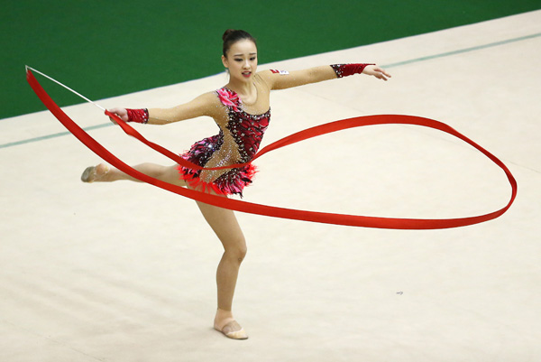 손연재는 지난 9일 서울 노원구 태릉선수촌 리듬체조장에서 열린 리우 올림픽 및 제8회 아시아시니어선수권대회 파견대표 2차 선발전에서 4종목 합계 73.900점으로 여유있게 1위를 차지했다.