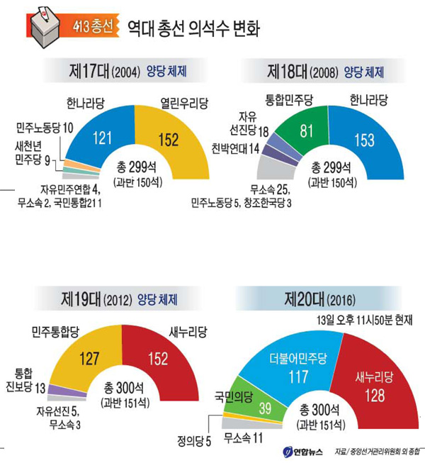 역대 총선 의석수 변화