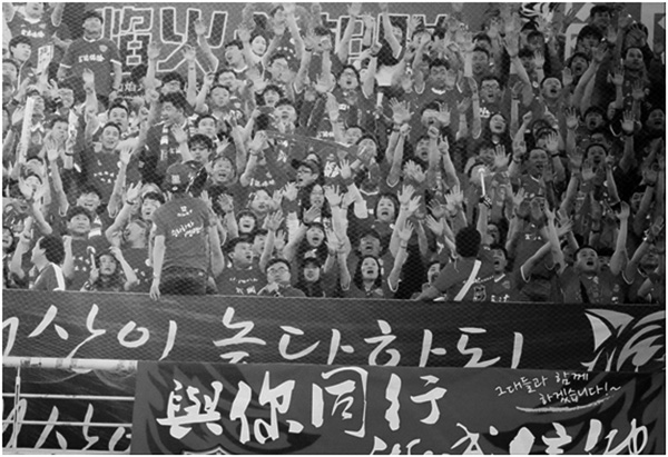 이날도 전국 각지에서 모여온 우리 축구팬들은 현지행을 한 연변의 축구팬들과 똘똘 뭉쳐 또 한번의 대형 응원서사시를 써냈다. 이네들은 왜 이토록 열광하는가! 그 답이 뭔지는 쉽게 떠오르지 않지만 조선족에게 있어서 축구는 실로 총체성인것만은 틀림없는것 같다.