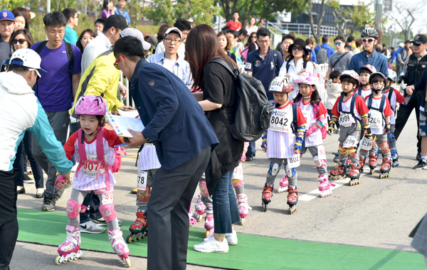 깜찍한 어린이 인라이너