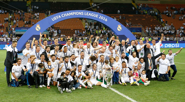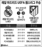 레알 마드리드는 29일 이탈리아 밀라노의 산시로 스타디움에서 열린 2015~2016 유럽축구연맹(UEFA) 챔피언스리그 결승전에서 AT 마드리드를 상대로 120분 연장 혈투 끝에 1-1로 무승부를 거둔 뒤 승부차기에서 5-3으로 승리했다.