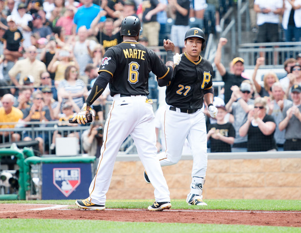 강정호의 시즌 타율은 0.270에서 0.273(77타수 21안타)으로 올랐다.