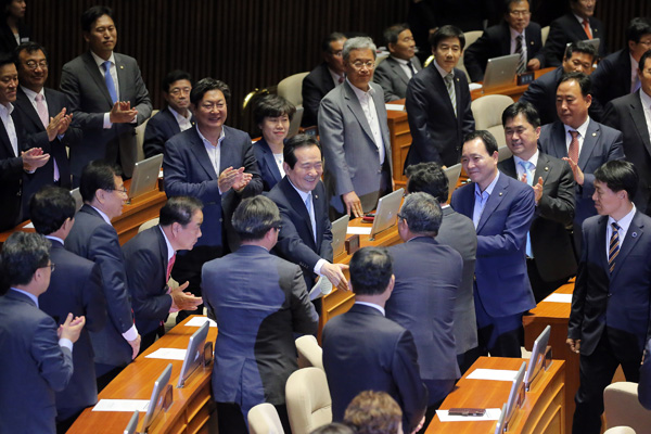 이날 국회는 국회의장으로 더불어민주당 출신 정세균 의원을, 국회부의장으로 새누리당의 심재철 의원과 국민의당의 박주선 의원을 각각 선출했다.