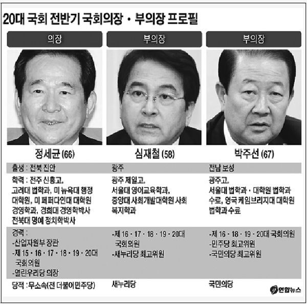 국회의장단에 나타난 이런 변화가 ‘20년만의 3당 체제’와 ‘16년만의 여소야대’라는 새로운 환경에 더해져 의회권력 교체 바람을 일으킬지 관심이 모아진다.