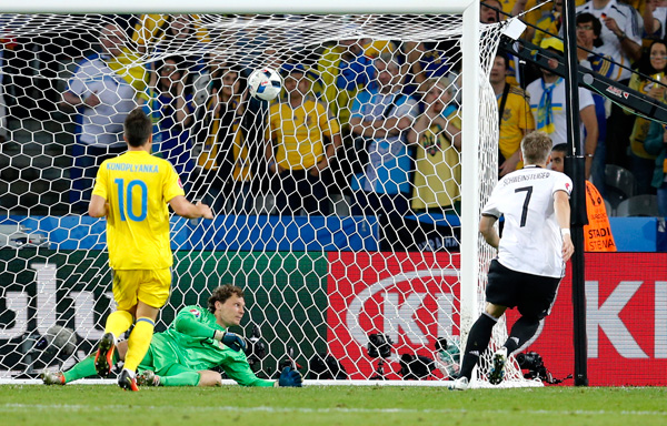 독일은 후반 추가 시간 역습 상황에서 메주트 외칠이 왼쪽 측면에서 크로스한 볼을 반대쪽에서 달려든 슈타인슈타이거가 오른발 슈팅으로 추가골을 뽑아내 우크라이나의 추격 의지를 꺾었다.