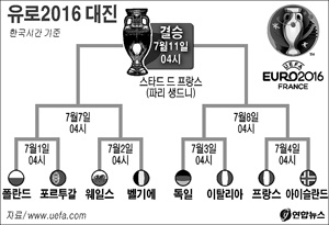 이밖에 크리스티아누 호날두가 아직 재실력을 발휘하지 못하는 포르투갈은 7월 1일 폴란드와 8강전을 치르고, 이번 대회 득점 선두인 가레스 베일(3골)의 결정력을 앞세운 웨일스는 2일 ‘황금세대’로 무장한 벨기에와 맞붙는다.