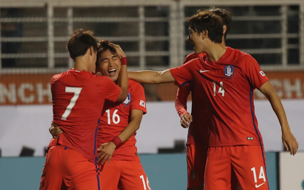 포백(4-back)은 왼쪽부터 심상민(서울 이랜드), 최규백(전북), 정승현(울산), 이슬찬(전남)이 맡았다. 골키퍼 장갑은 김동준(성남)이 꼈다.