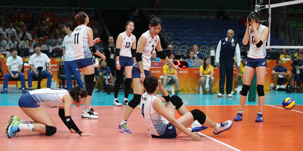 한국은 여자배구 대표팀이 16일 밤 브라질 리우데자네이루의 마라카낭지뉴에서 열린 리우데자네이루 올림픽 준준결승에서 네덜란드에 1-3(19-25 14-25 25-23 20-25)으로 졌다.