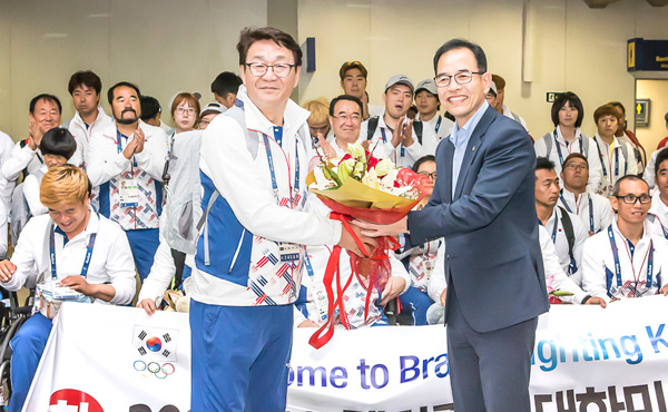 이날 공항엔 브라질 한인회, 재브라질 대한체육회 등 한인 단체에서 선수단을 환영하는 행사를 했다.