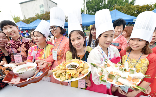 7일 인천시청 앞 미래광장에서 열린 ‘다문화가족과 함께하는 한가위 큰잔치’에서 참가자들이 전통음식 솜씨자랑에 출품할 음식을 선보이고 있다. /인천시 제공