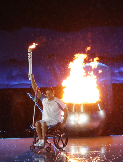 성화 점화는 브라질 장애인 수영선수 클로도알도 실바가 맡았다.