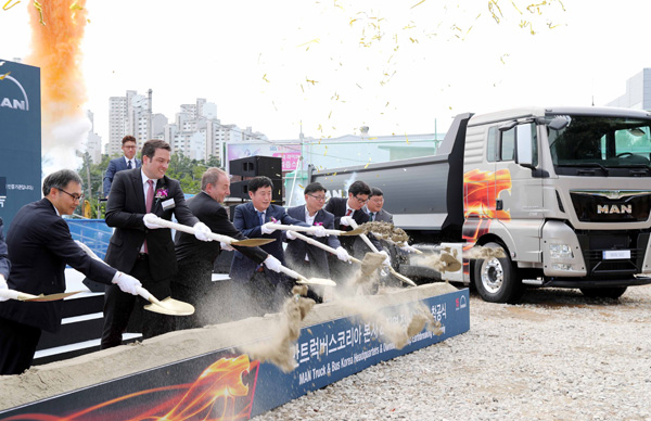 독일의 글로벌 상용차 생산업체인 ‘만트럭버스’(MAN Truck&Bus)코리아가 19일 용인시 기흥구 하갈동에 본사건물을 신축하고 직영 서비스센터를 짓는 공사를 시작했다.