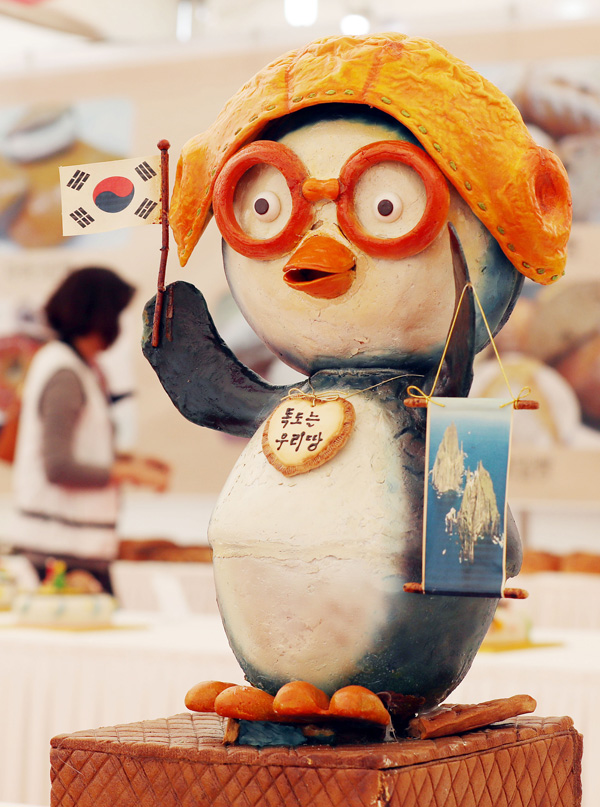 지난 23일 오후 인천시 남구 문학경기장에서 열린 ‘인천음식문화박람회’에서 빵으로 만든 캐릭터 ‘뽀로로’가 전시돼 있다. /연합뉴스